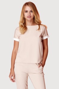 Dopasowany damski t-shirt w dwóch kolorach: biszkoptowym i czarnym.