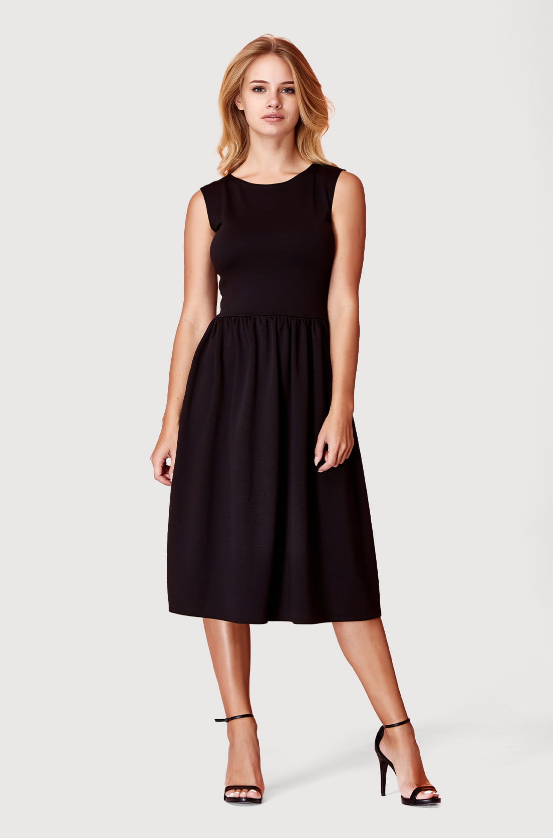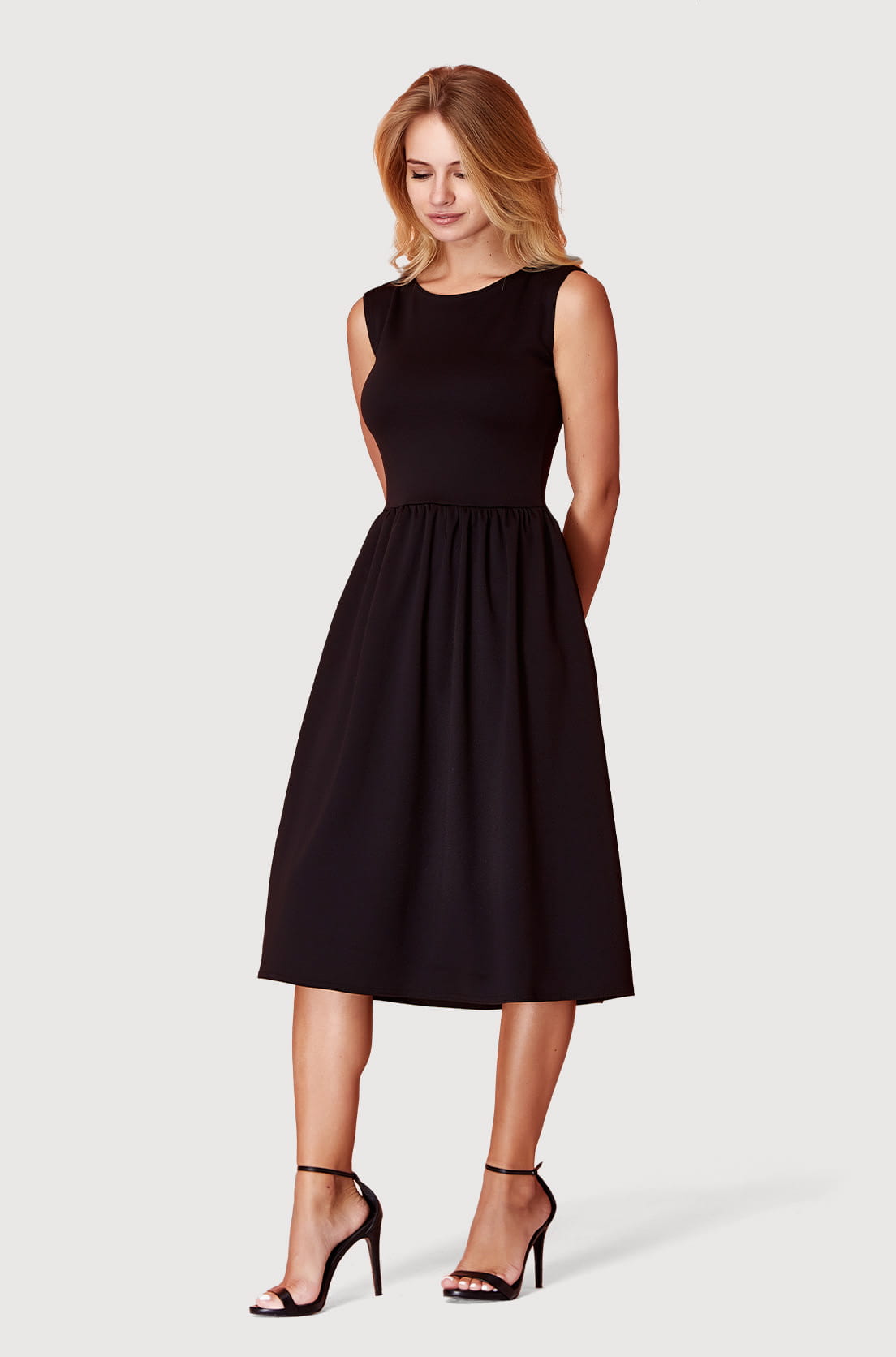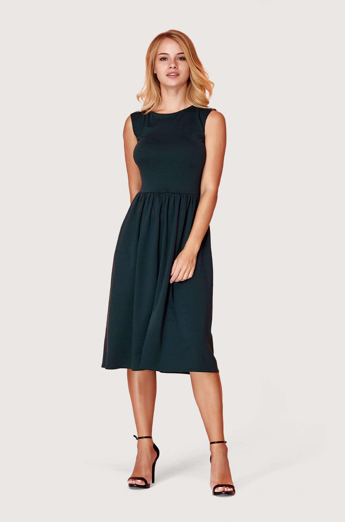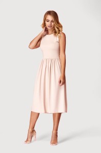 Sukienka ma rozkloszowany dół, co zapewnia wygodę i swobodę ruchu. To sukienka o regularnym fasonie, która podkreśla talię. Ze względu na swój fason sprawdzi się na różne okazje. Jest to letnia sukienka, bez rękawów i można ją nosić w cieplejsze dni. Okrągły dekolt nadaje jej dziewczęcego uroku. To sukienka o regularnym fasonie, która podkreśla talię. Długość midi pozwoli Ci czuć się komfortowo.